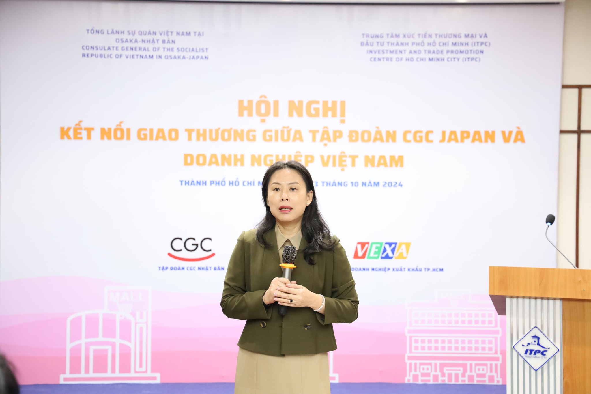 Vào sáng ngày 23/10/2024, Trung tâm Xúc tiến Thương mại và Đầu tư Thành phố Hồ Chí Minh (ITPC) phối hợp với Tổng Lãnh sự quán Việt Nam tại Osaka (Nhật Bản) tổ chức Hội nghị kết nối giao thương giữa Tập đoàn CGC Japan và Doanh nghiệp Việt Nam.
