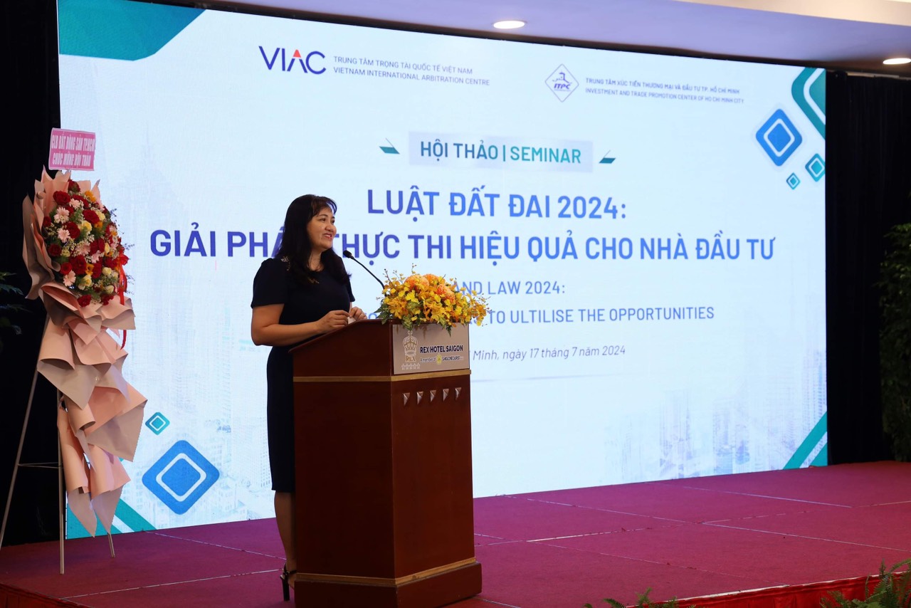Luật Đất đai năm 2024 đã được Quốc hội khóa XV thông qua và sẽ có hiệu lực từ 01/8/2024. Để phổ biến thông tin Luật Đất đai 2024 đến cộng đồng doanh nghiệp có vốn đầu tư trực tiếp từ các nước đang hoạt động trên địa bàn Thành phố, đồng thời trao đổi, thảo luận các vấn đề pháp lý phát sinh và khuyến nghị cho nhà đầu tư khi Luật có hiệu lực, Trung tâm Xúc tiến Thương mại và Đầu tư Thành phố Hồ Chí Minh (ITPC) phối hợp cùng Trung tâm Trọng tài Quốc tế Việt Nam (VIAC) tổ chức Hội thảo “Luật Đất đai 2024: Giải pháp thực thi hiệu quả cho nhà đầu tư” vào ngày 17/7/2024, với sự có mặt của gần 300 doanh nghiệp FDI.